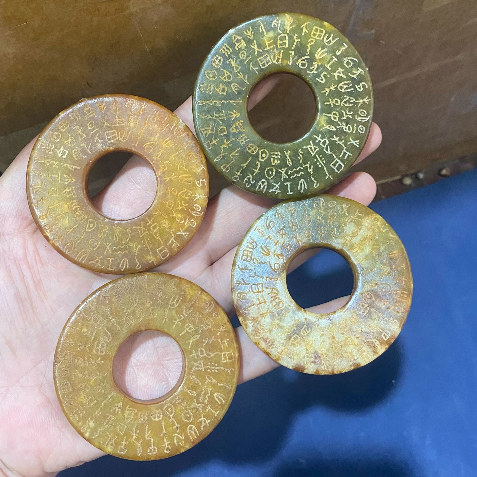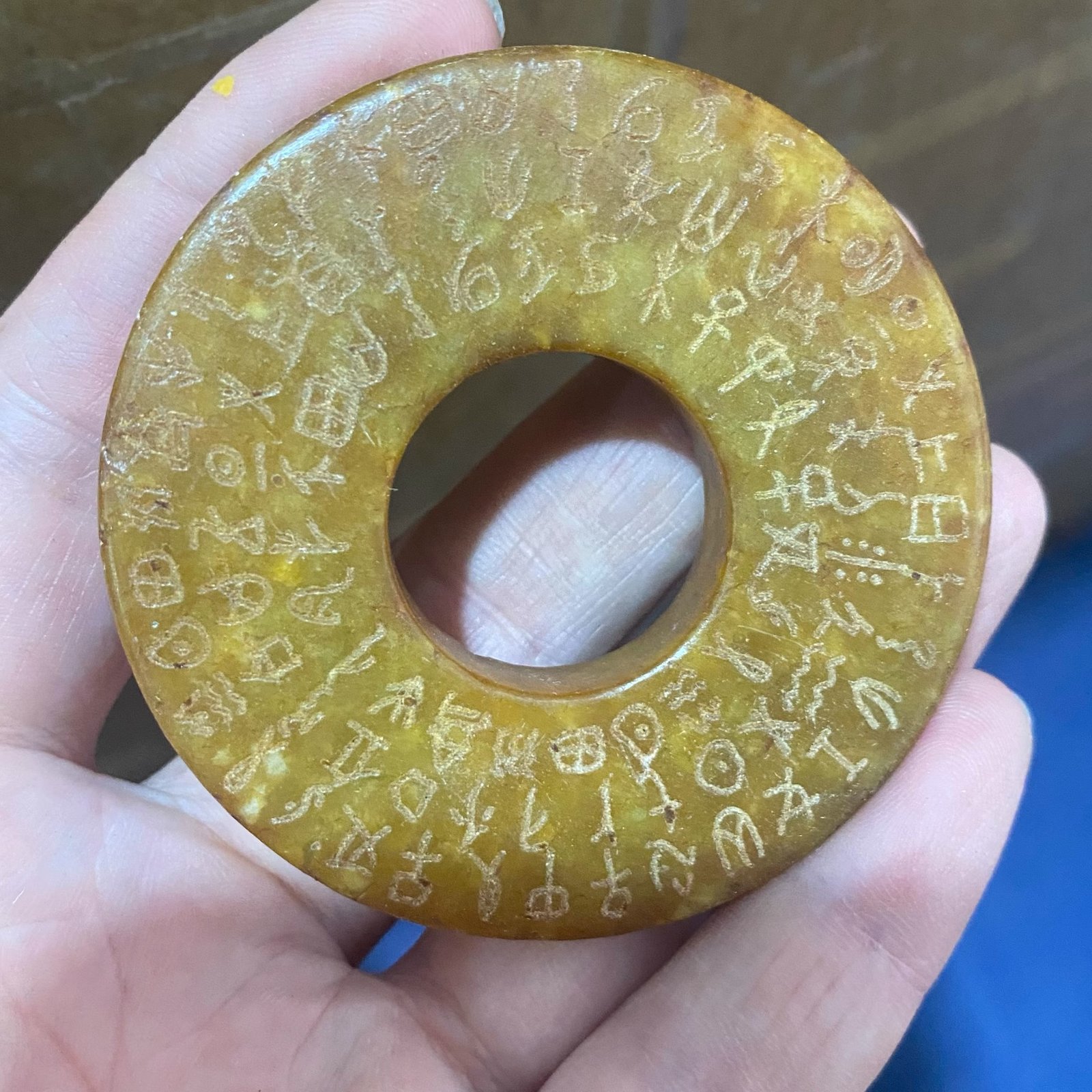 Han Dynasty-style Antique Jade Ornaments Aged Imitation of Ancient Jade, Inscribed Jade Bi (Jade Disc), Vintage Curios & Miscellaneous Collectibles