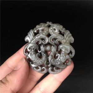 Imitation Ancient Xiuyu Jade Bi Disc with Double – sided Hollowed Dragon and Phoenix Patterns, PendantOrnament, Aged Old Jade Waist Hanging Pendant