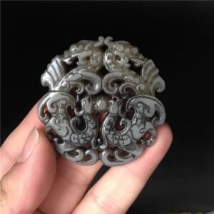 Imitation Ancient Xiuyu Jade Bi Disc with Double – sided Hollowed Dragon and Phoenix Patterns, PendantOrnament, Aged Old Jade Waist Hanging Pendant
