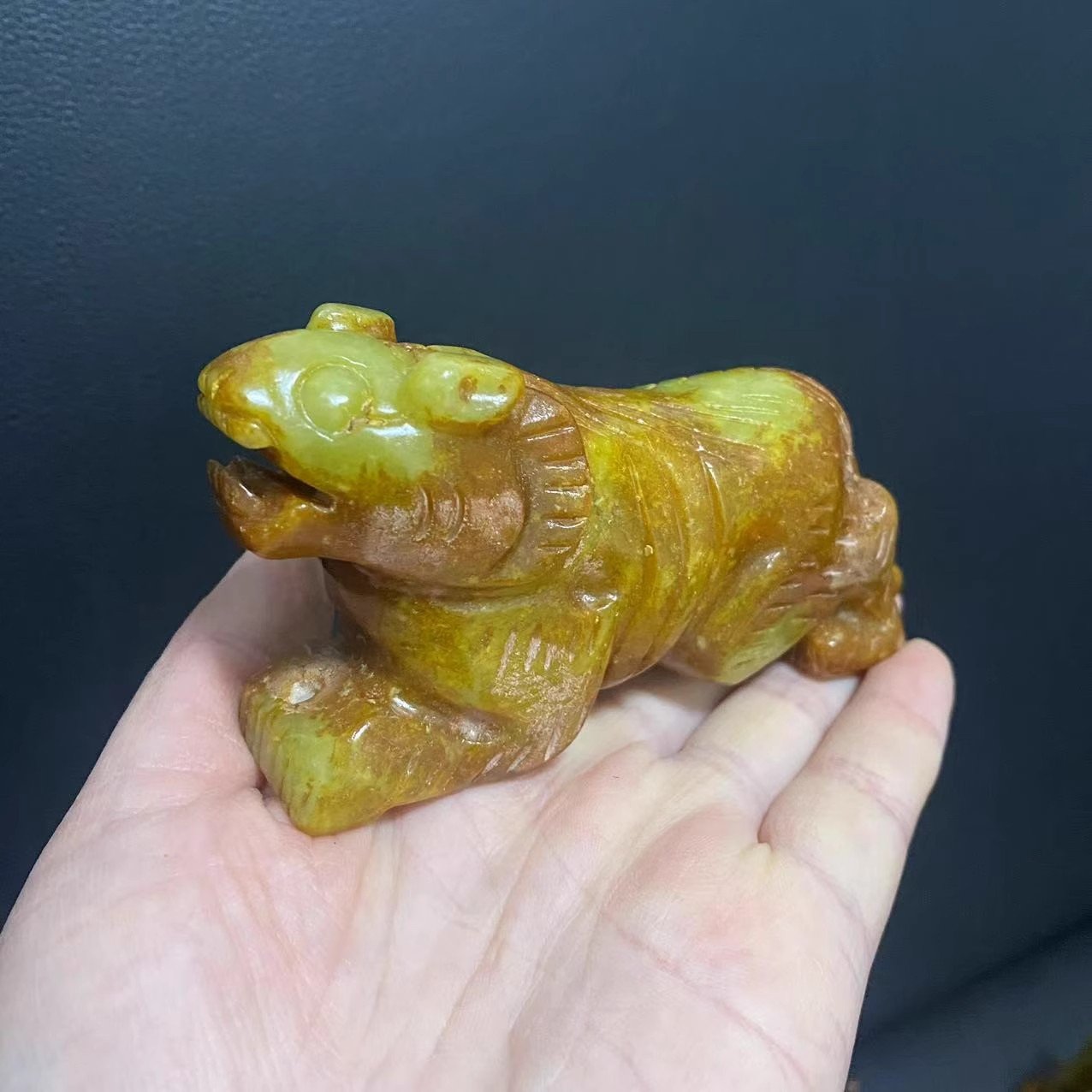 Ming – Qing Period Archaic Jade Antique, Vintage Xiuyu Jade Three – Dimensional Ornament, Mighty Tiger Motif Scholar’s Object, Miscellaneous Curio Collection