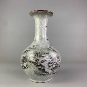 Qianlong – Style Famille – Rose Snow Scene Vase (Visiting Friends in Streams & Mountains), Archaized Porcelain, Antique Decor & Collection