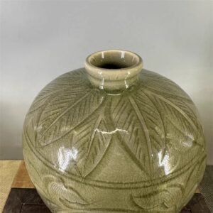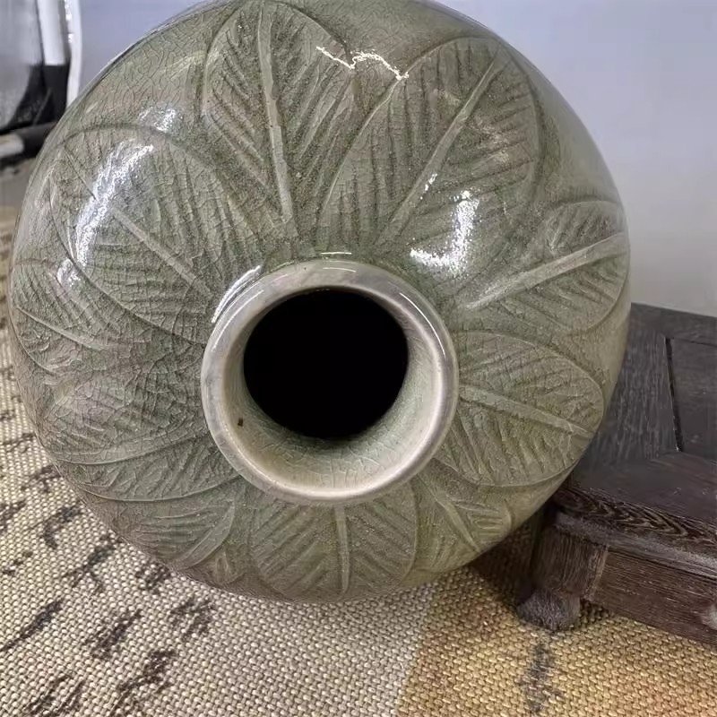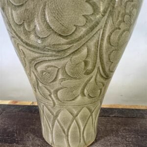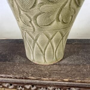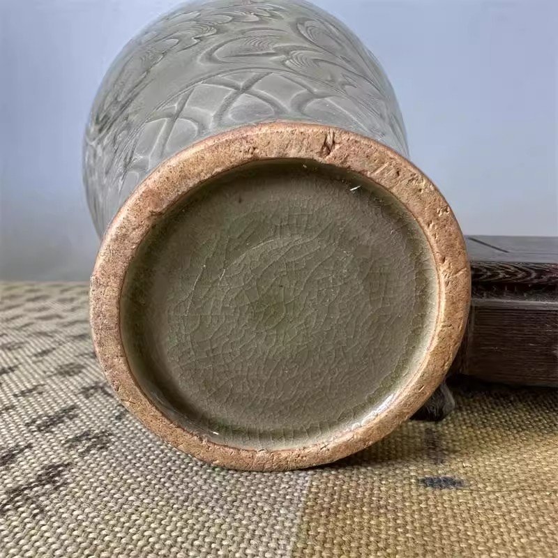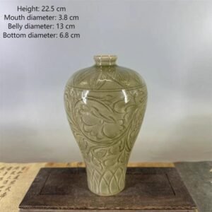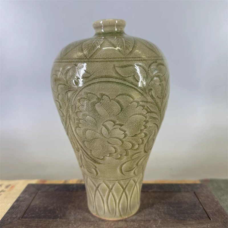Song Dynasty Yaozhou Kiln Celadon Carved Prunus Vase – Antique Porcelain Artifact, Excavated Ancient Ceramic Display