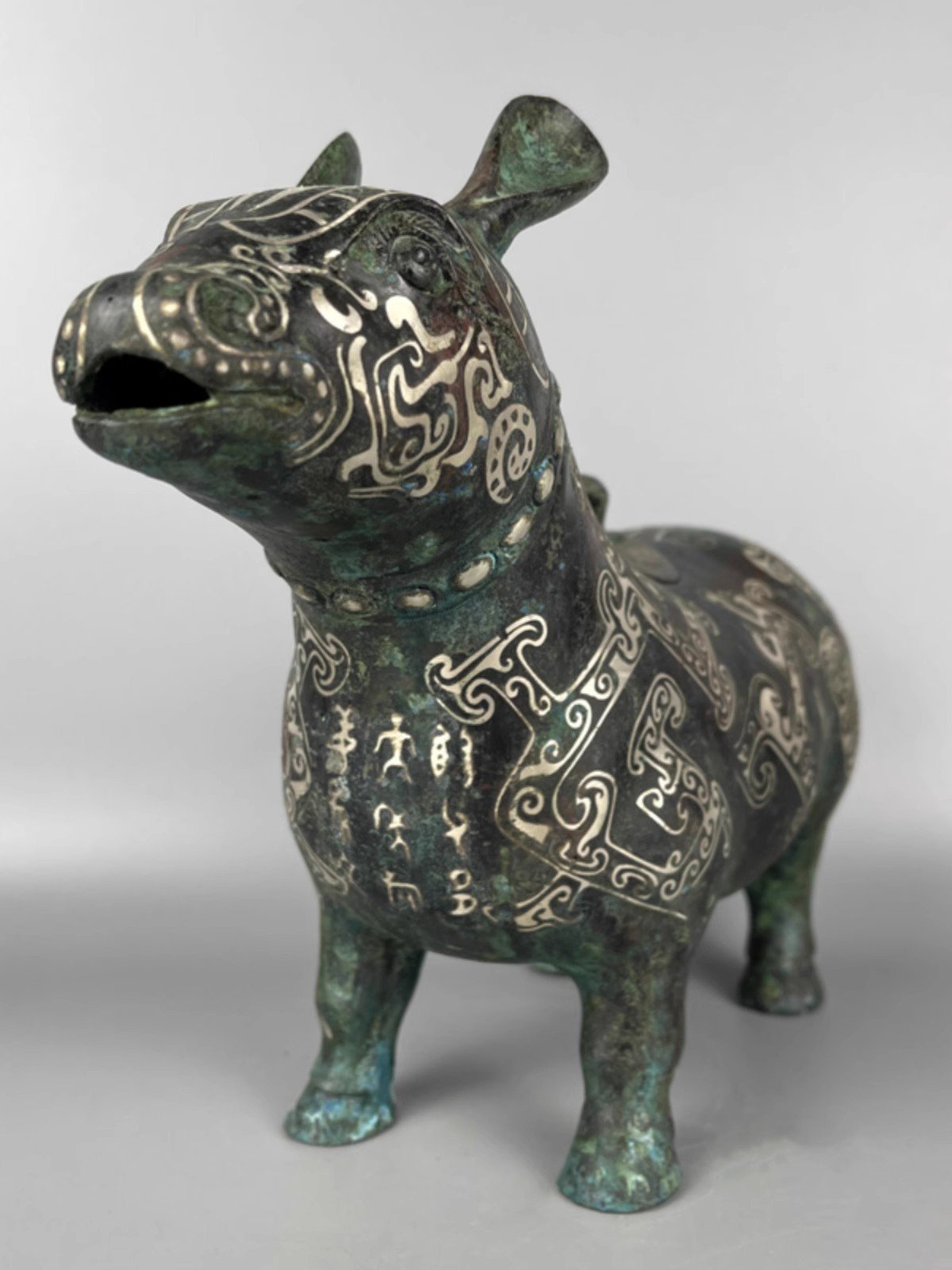 Zhou Ding Imitation Archaic Bronze Ware Ornament, Silver – inlaid Warring States Period Xi Zun (Ancient Wine – holding Vessel, Ritual Vessel)