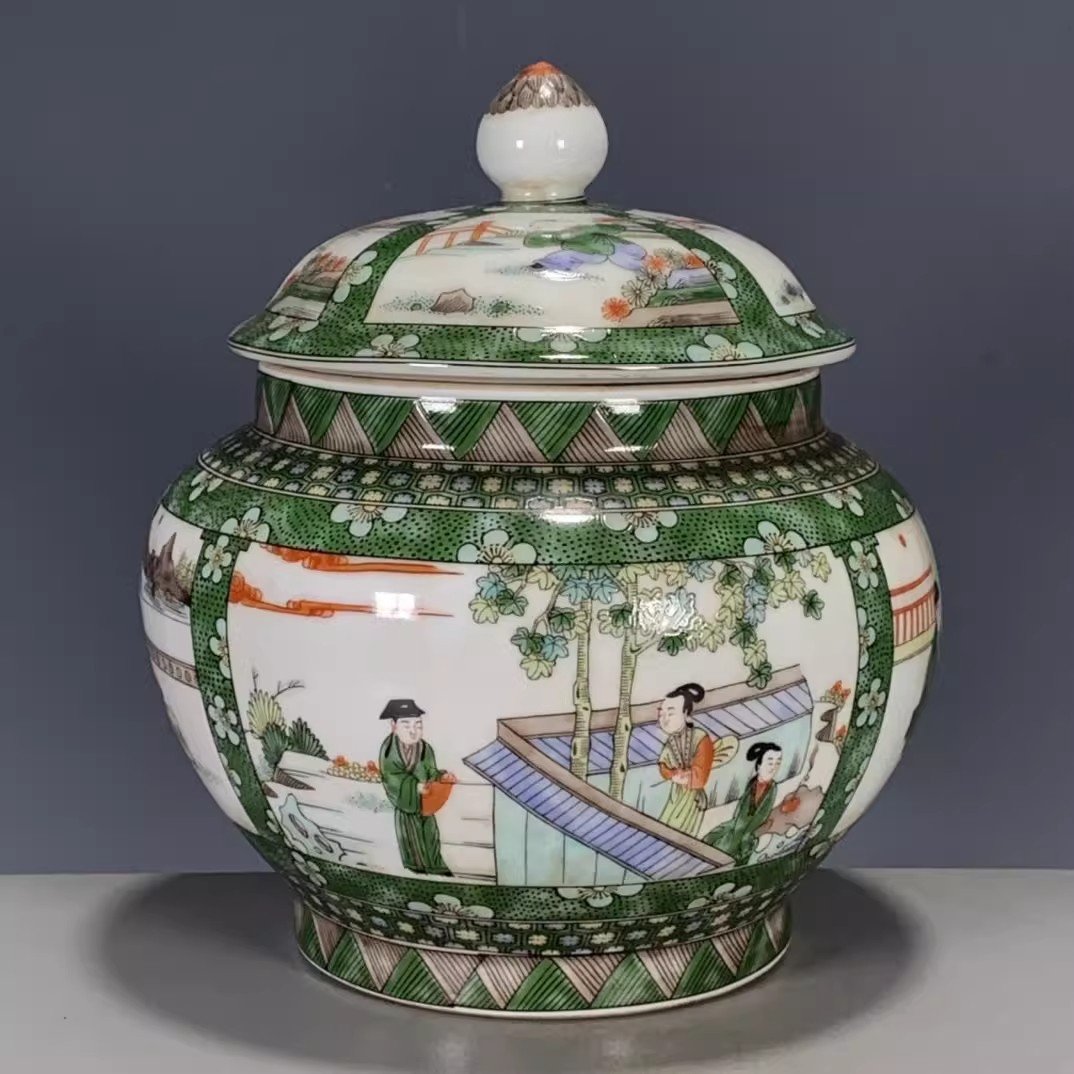 1972 Art Porcelain Factory Old Stock Ancient Color Figure Tea Caddy, Antique Collectible, Vintage Folk Ware, Decorative Ornament1972 Art Porcelain Factory Old Stock Ancient Color Figure Tea Caddy, Antique Collectible, Vintage Folk Ware, Decorative Ornament