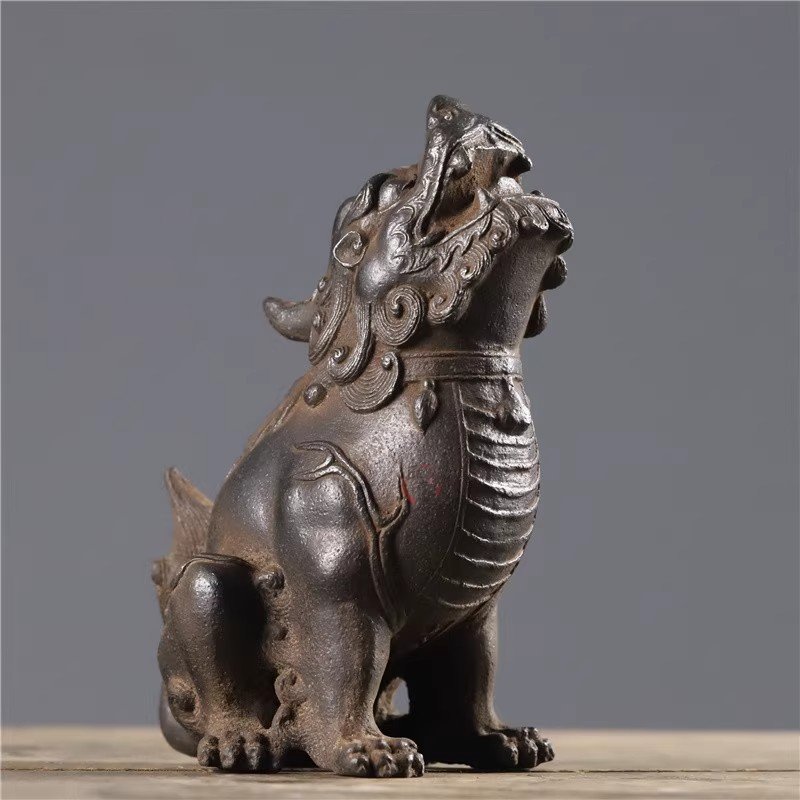 Antique – styled and artificially aged old ironware Heavenly – roaring unicorn, retro desktop cast – iron small lion, classical home collection and display piece