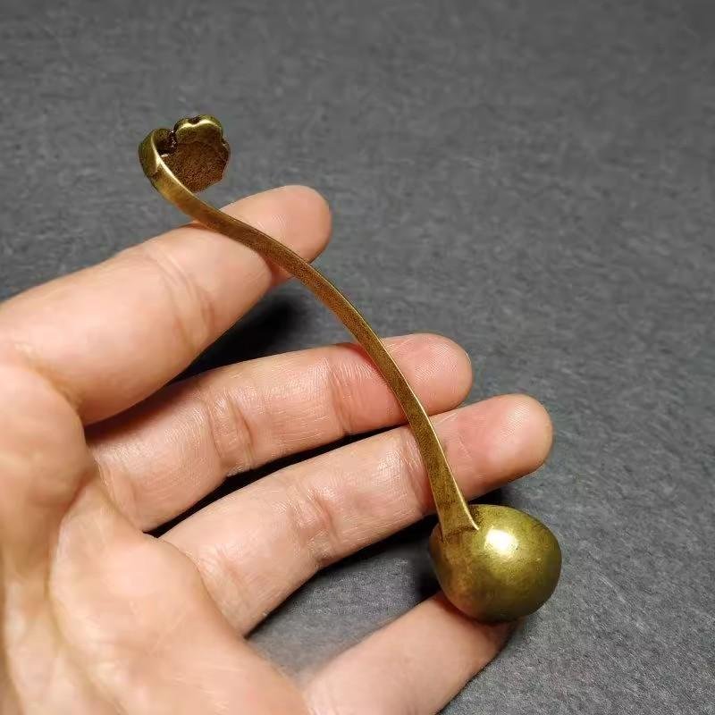 Antique Curio & Scholar’s Object, Bronze Ware Collection, Imitation Brass Ruyi – Handle Water Ladle, Small Bronze Ladle, Incense Powder Ladle, Water Container Ladle
