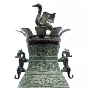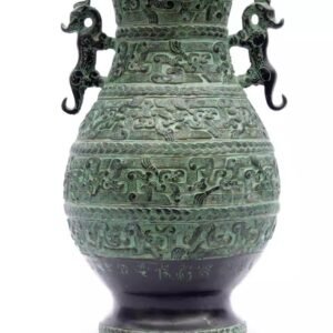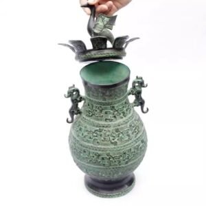 Archaized Bronze Ware Vase Ornament Crane-Spreading-Wings Round Pot, Home Feng Shui Gift, Living Room Decoration for Flower Arrangement, Double-Tiger Vase