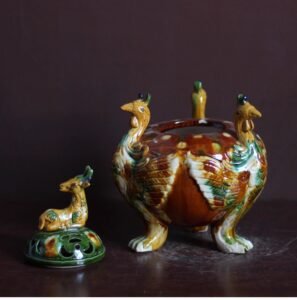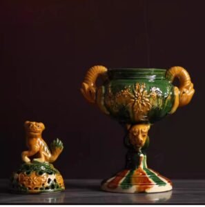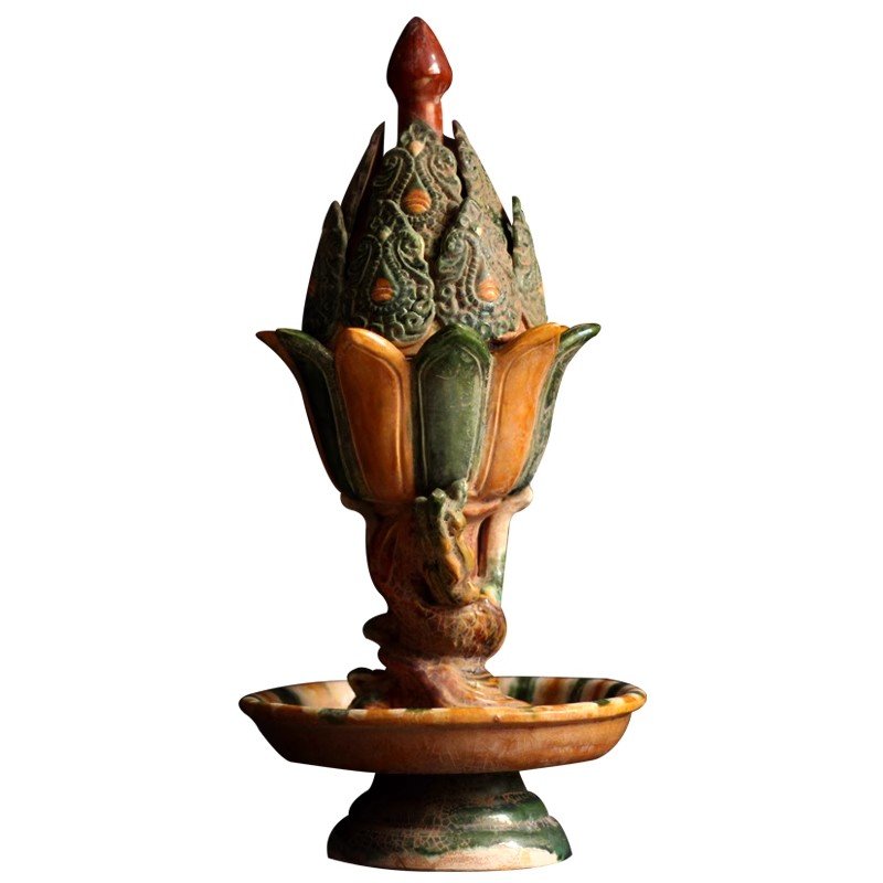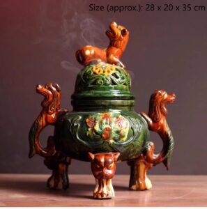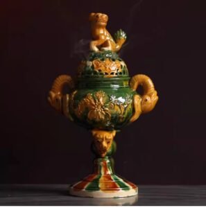 Ceramic Incense Burner Ornament, Tang Tri – color Decorative Incense Burner, Artwork, Chinese – style Home Collection 。